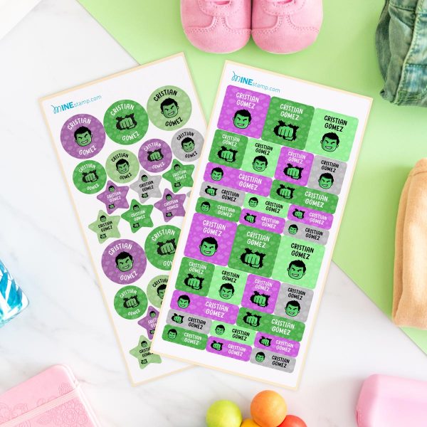 Pack de etiquetas textiles termoadhesivas y adhesivas superhéroes HULK