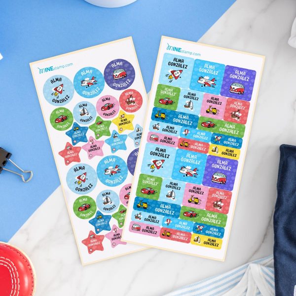 Pack de etiquetas textiles termoadhesivas y adhesivas VEHÍCULOS