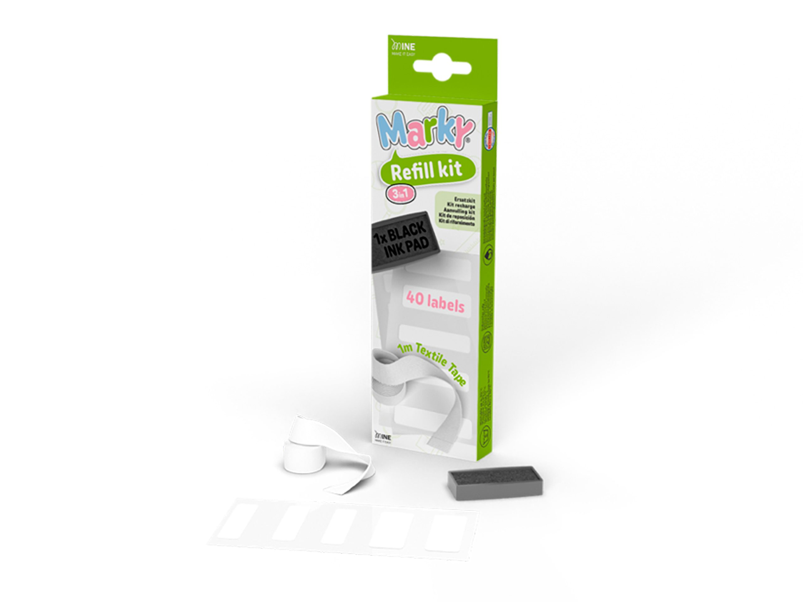 Kit de Recambios Marky, el pack más completo para que puedas seguir marcando todas las pertenencias del peque con tu sello Marky. Además este kit es compatible con cualquiera de nuestros sellos rectangulares de 37 x 14 mm (Sello Abecedario, Sello Personalizado o Sello Compact Line), así que si tienes alguno de nuestros sellos rectangulares podrás seguir marcando cualquier pertenencia de tu peque sin necesidad de comprar otro sello.