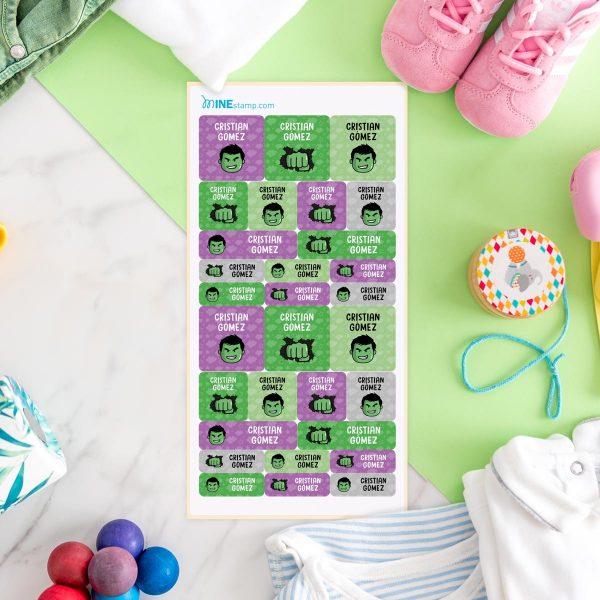 Personaliza tu pack de etiquetas textiles y adhesivas hulk para marcar ropa, papel y objetos