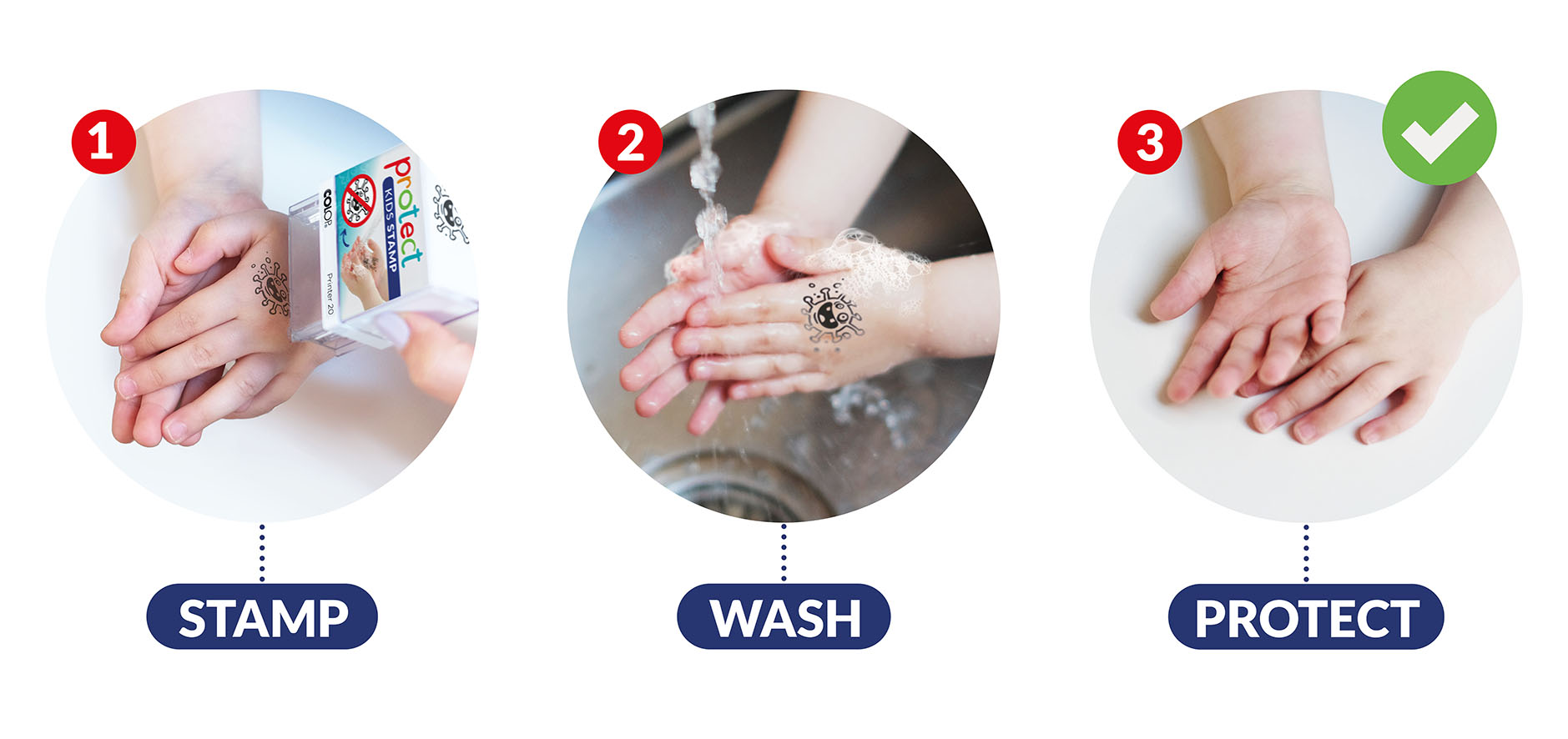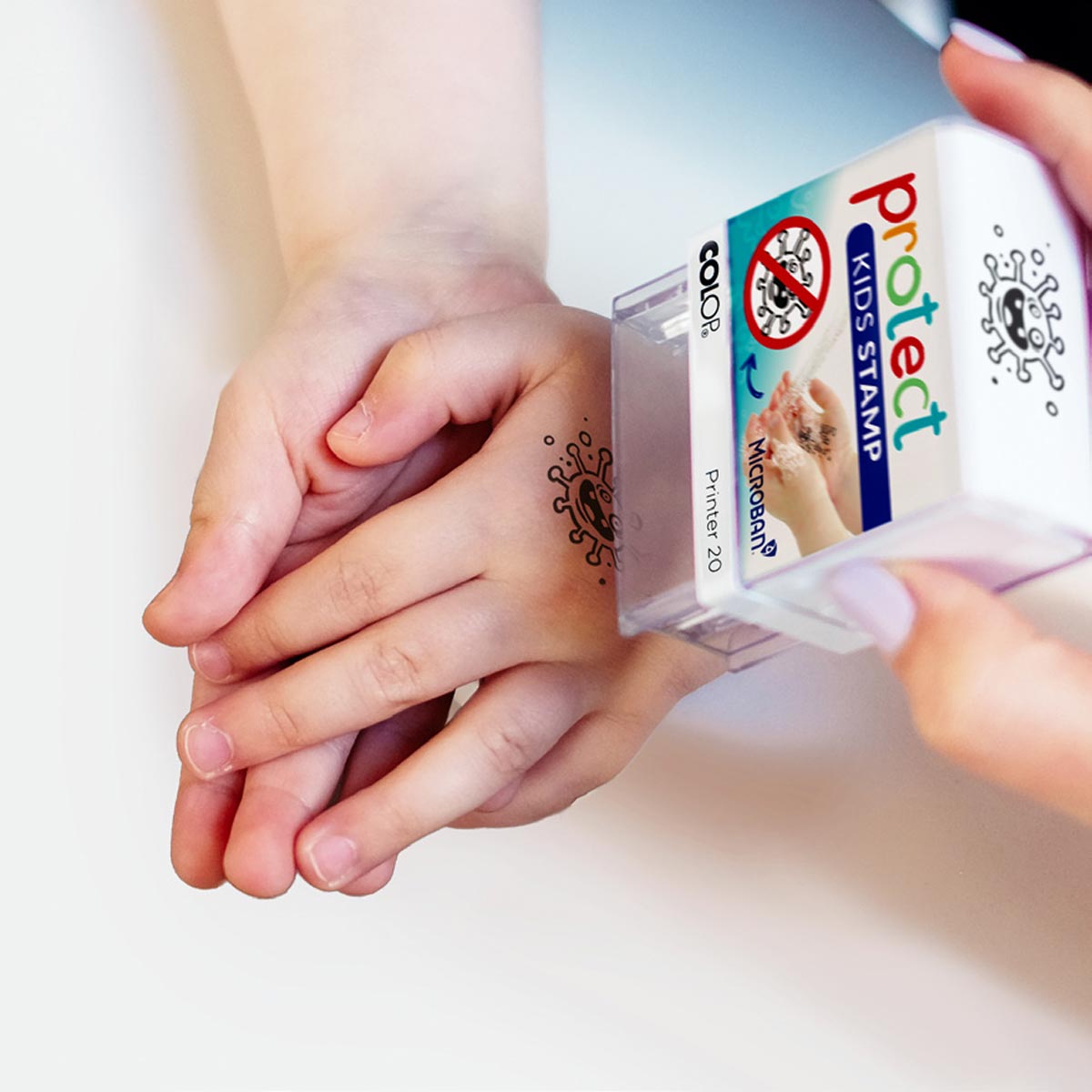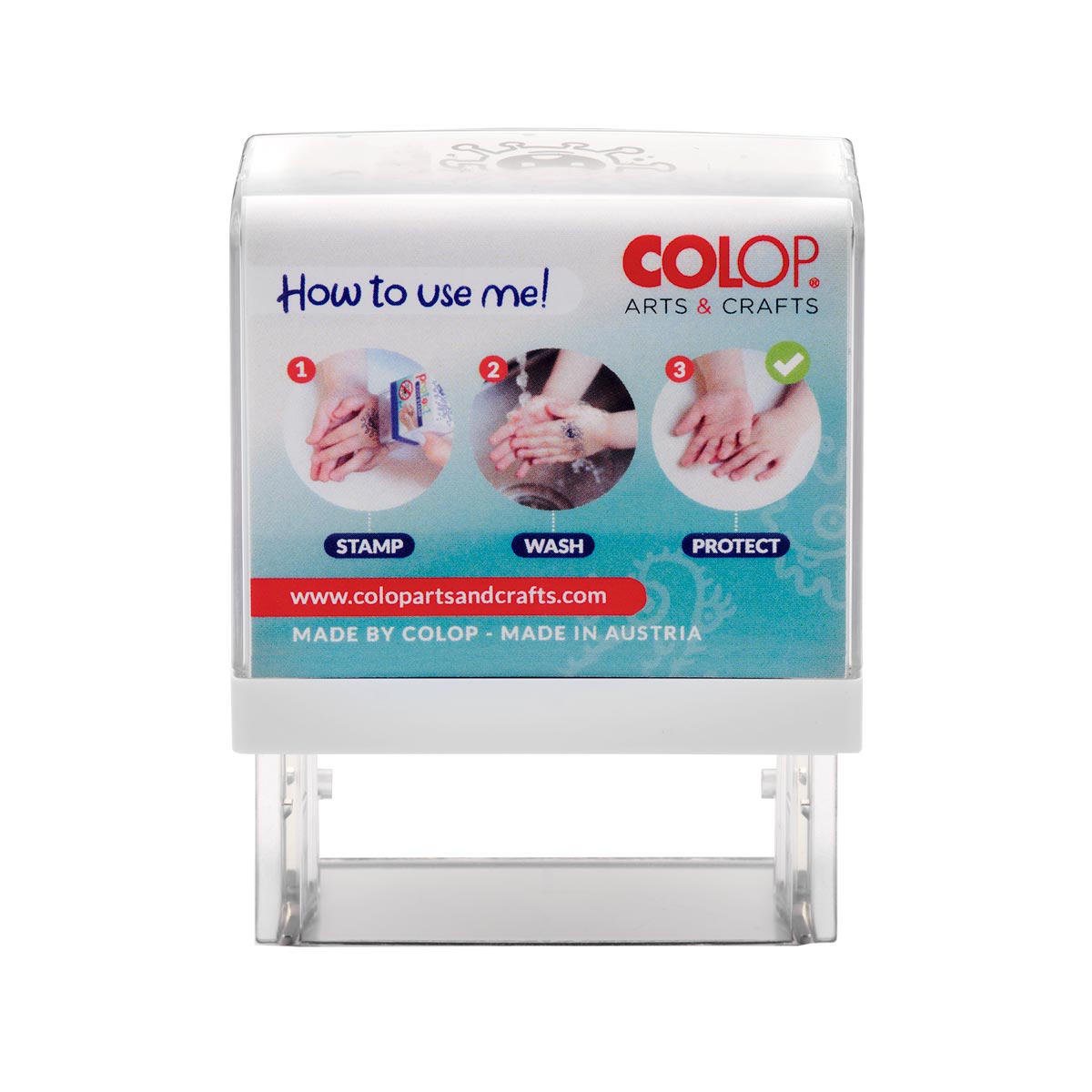 Colop ha ideado esta sello con la intención de enseñar a los niños y niñas la importancia de lavarse las manos varias veces al día, no solo en situaciones excepcionales, y que el hecho de hacerlo se convierta en un hábito divertido para ellos.